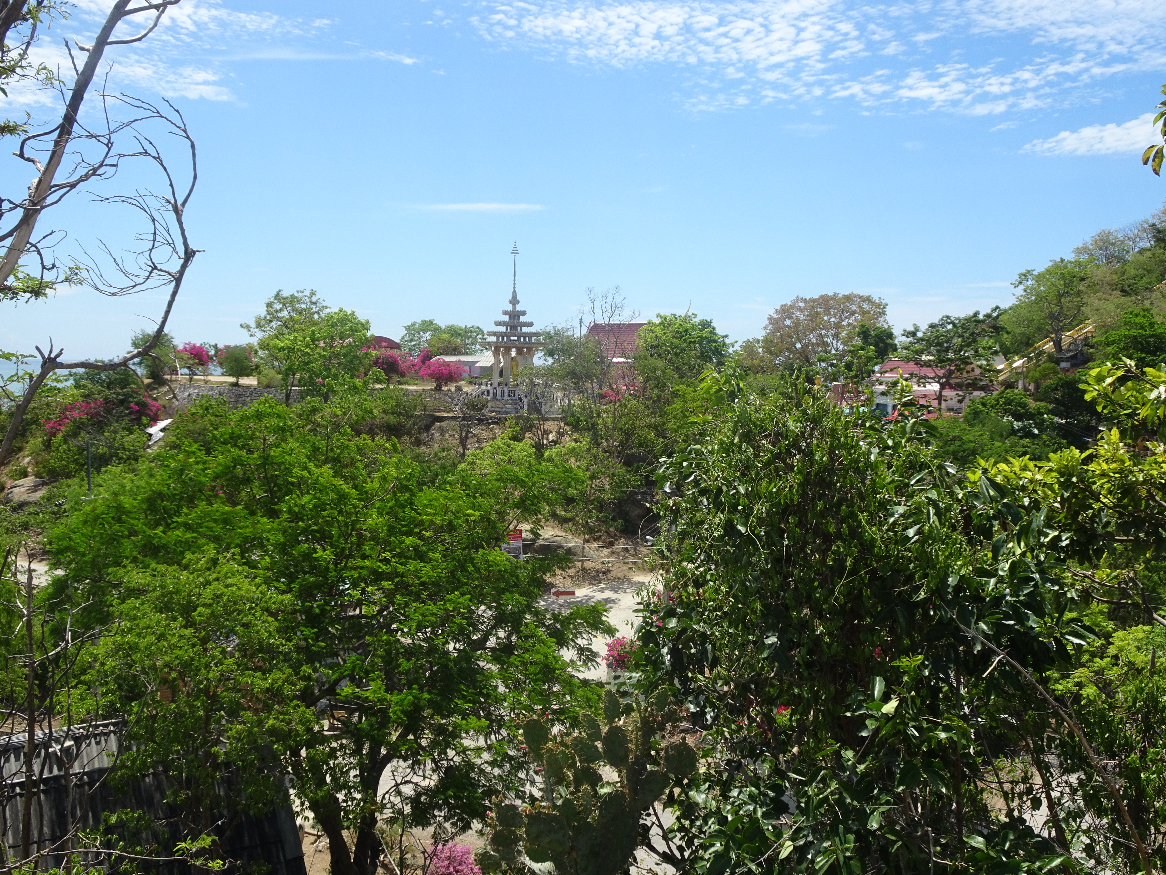View from the other side of the hill. A European drowned and was dragged out of the water on this beach, about an hour after the photo was taken. Saw online he may have been Italian and possibly suffered heart attack. I have been on this beach before and it is quite shallow and no current so swimming is not hard there, so maybe just the heat got to the guy. The white temple is the most scenic part of the complex, but my camera battery was just about done. Also it was more up and I was getting hot and tired so just headed downhill.