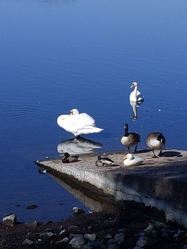 Very peaceful walk but it was early, just a few dog walkers and bike riders. Families were just starting to arrive at the flash to enjoy the facilities,