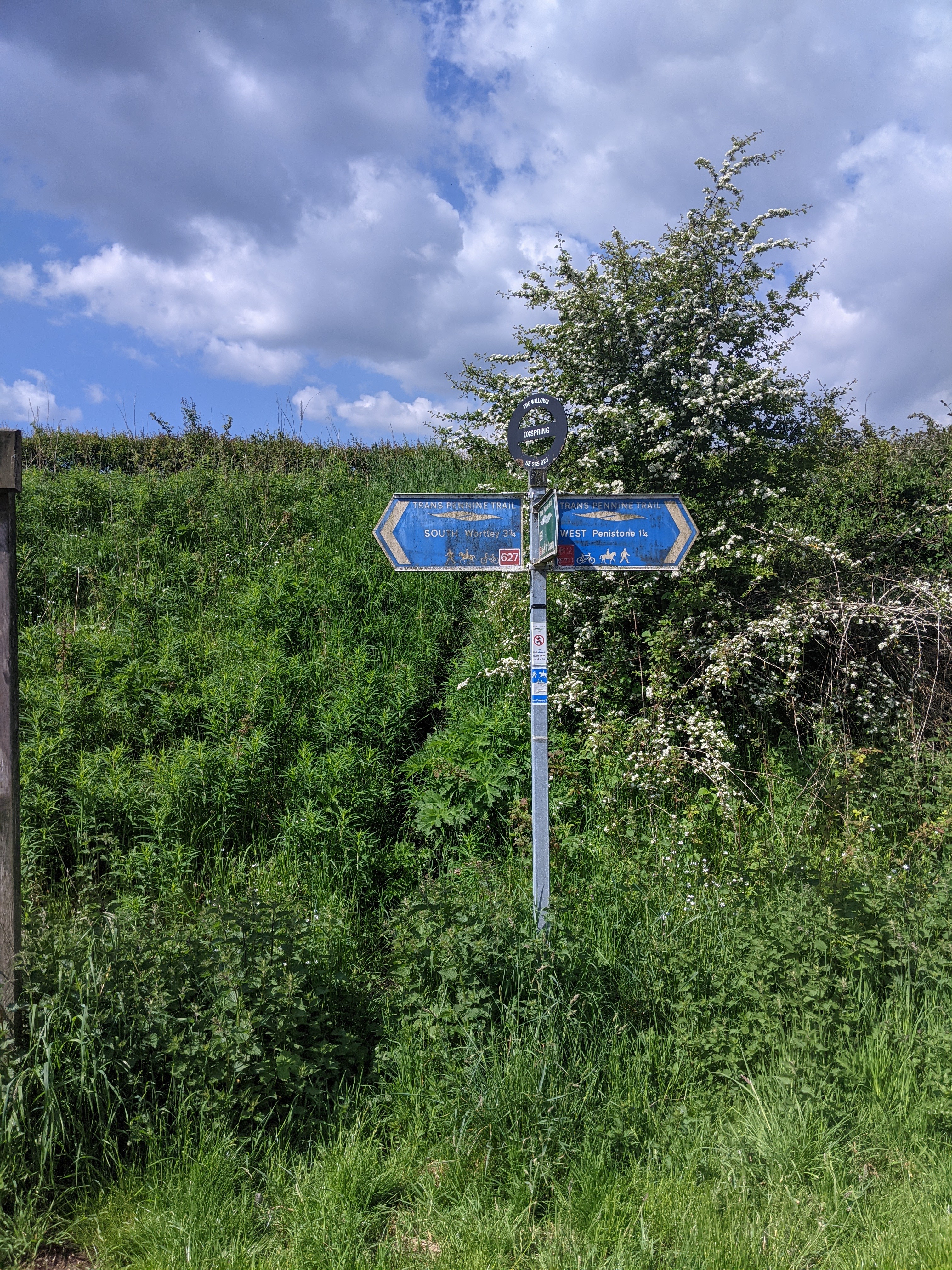 Starting at the car park at Finkle Street, near Wortley, a walk along the Trans Pennine Trail to Oxspring and back. Just over 10km. The path is really well maintained, mainly tarmac, although there are a couple of sections at the Finkle Street end that get churned up by trail bikes and horses so would be very muddy after rain.
