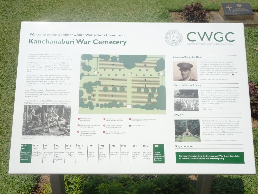 Just across the way from the museum is the allied war cemetary,there are actually 3 in the area. Two thirds of this one seem to be British. As far as possible after the war the bodies of those who died in the jungle etc were recovered and identified and then laid to rest at the cemetaries around Kanchanaburi. The ashes of those cremated in the pow camps were also recovered and laid to rest here.