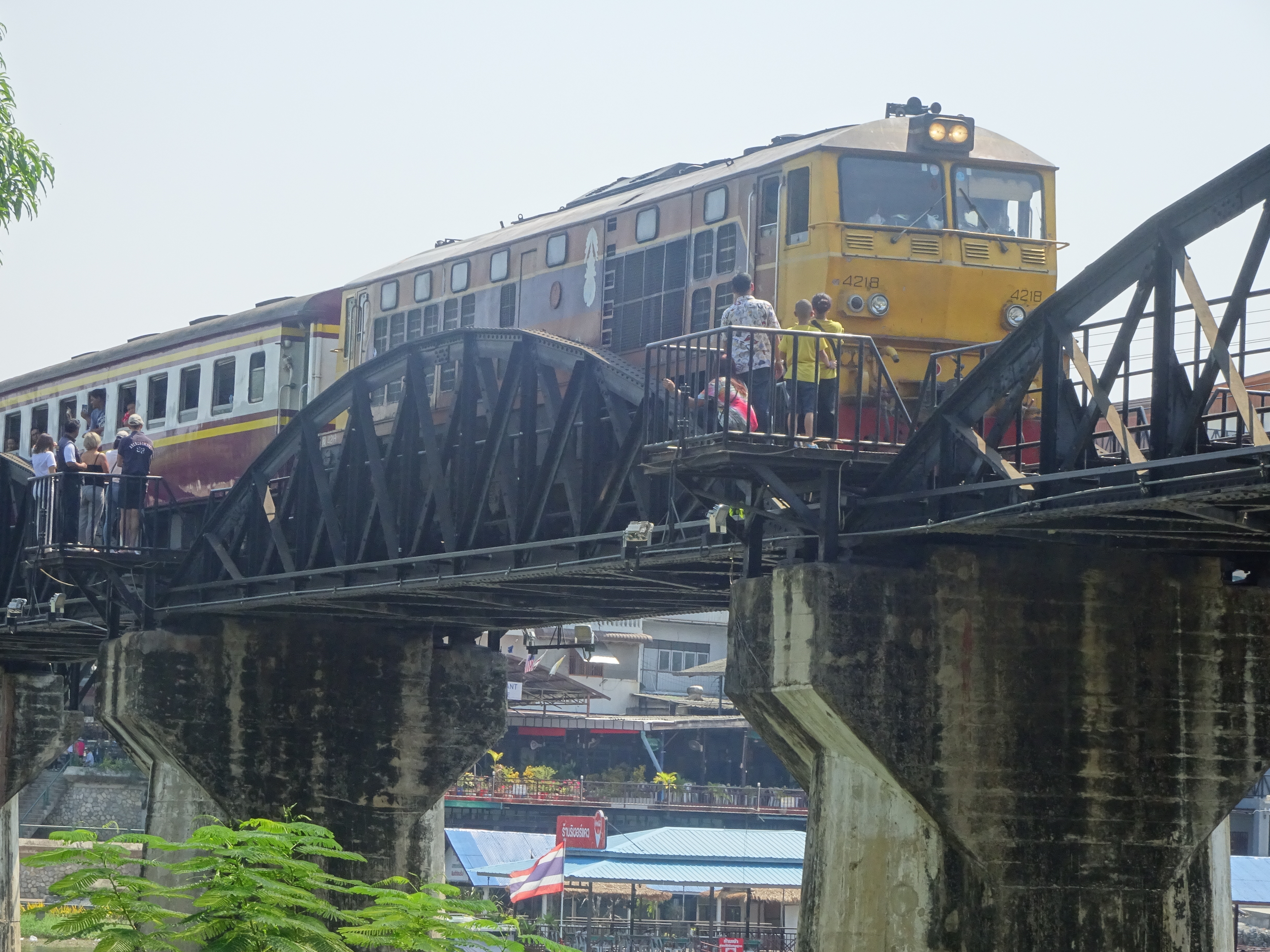 Took the train from Thonburi station to the end of the line at Nam Tok, took about 4 hours and 40 minutes with a few delays. Checked out in plenty of time to get the train at 07:50, the Grab app (same as Uber) said 30 minutes but took nearly 50. Got to the station with 5 minutes to spare, which was enough time to buy a ticket and find a seat. The train left dead on time. The train follows the path of the so called Death Railway, built by the Japanese with the help of prisoners of war and Asian press ganged labourers.  The Bridge on the River Kwai is probably the most famous film about this. More on this later and why it should be Bridge on the Not River Kwai.