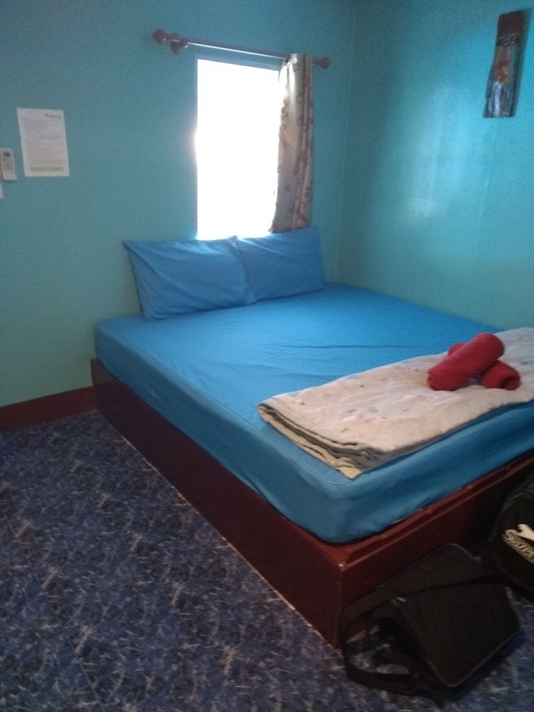 Staying at the Smiley Frog guesthouse, rooms are basic but it is very clean and has air con, en suite etc. The room is about half the size of the guesthouse I just left but the same price. It is off the main street so it is quiet but close to bars and restaurants.
